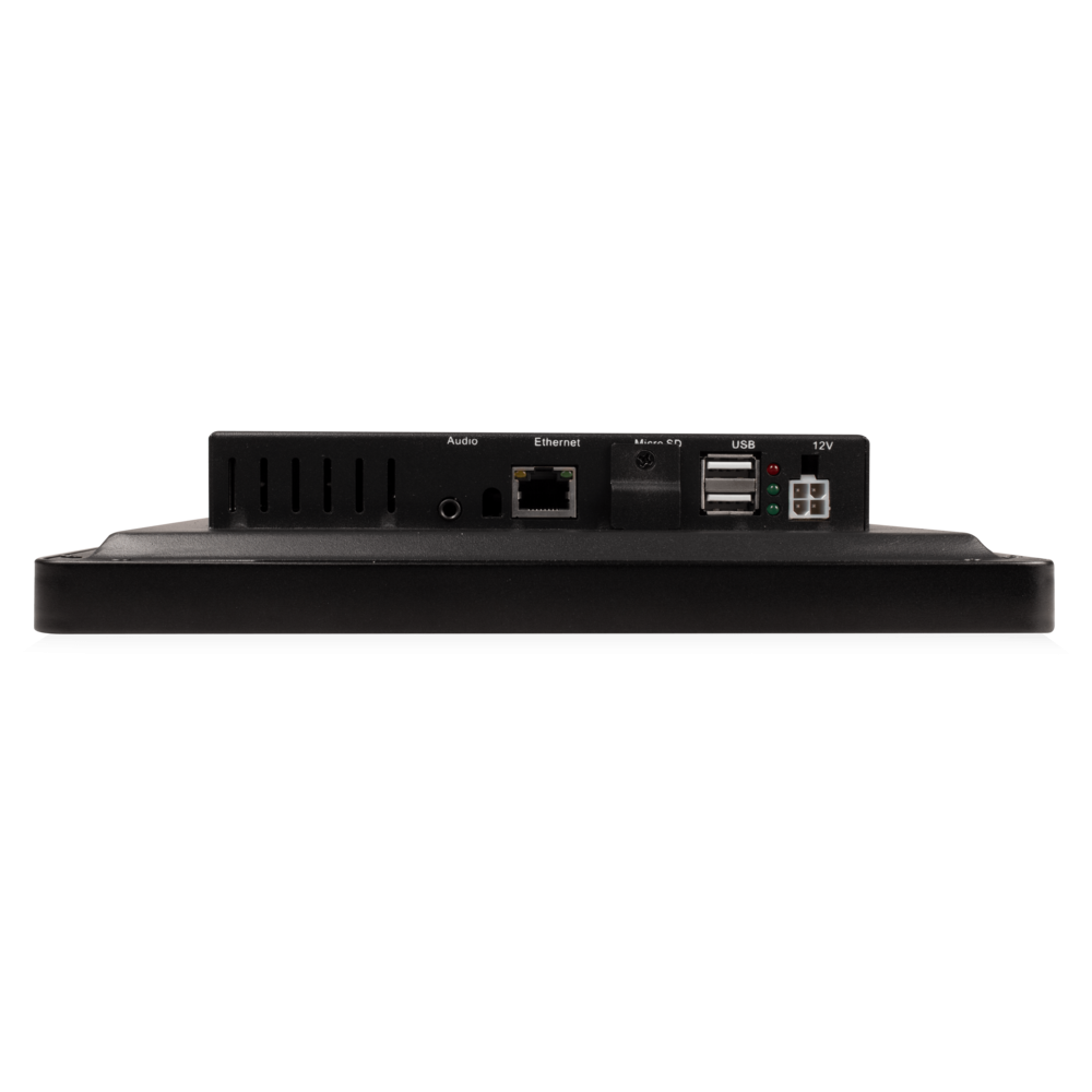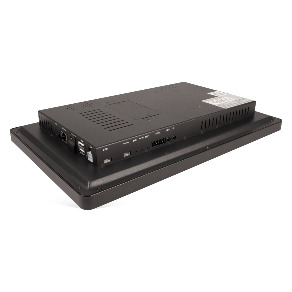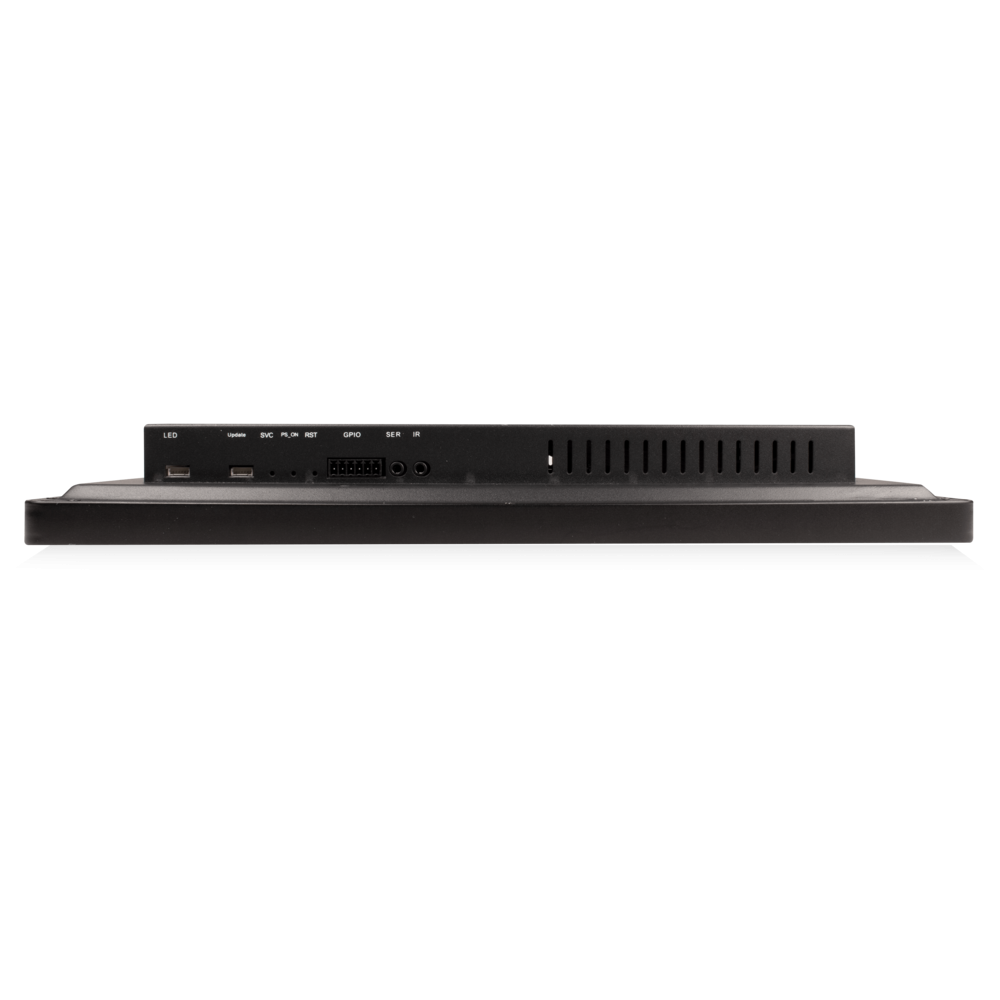 Netzwerk (Gbit/ PoE+), WLAN optional, USB, RS232, 4 GPIO, IR (In/ Out)