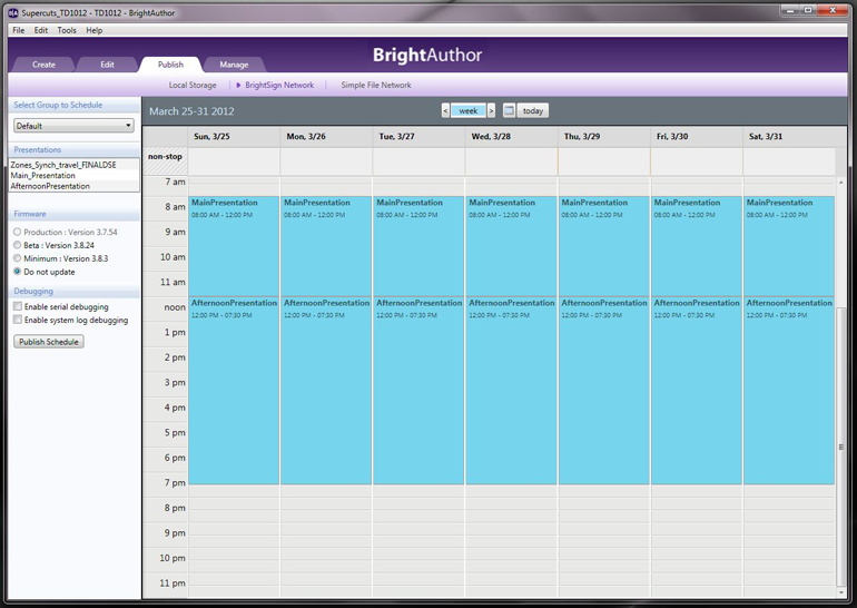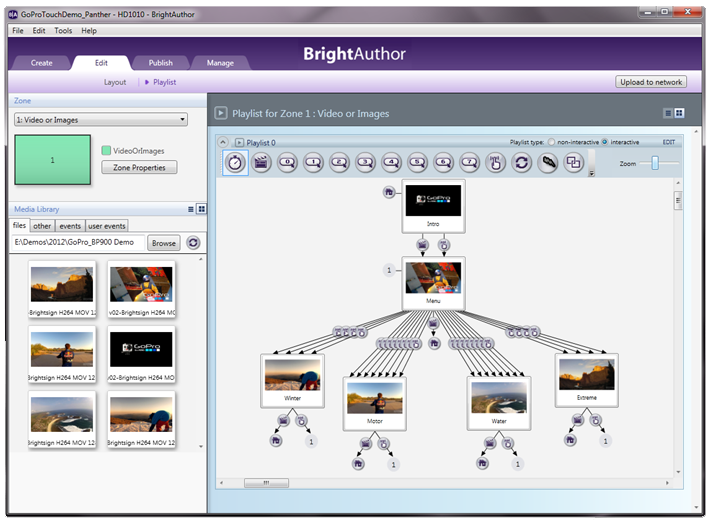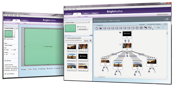 BrightAuthor ist eine Digital Signage PC Software. Der BrightAuthor dient zum einfachen Erstellen von simplen bis komplexen Präsentationen für BrightSign Mediaplayer und zum Veröffentlichen über Micro SD Karten, Netzwerk und/oder Internet.