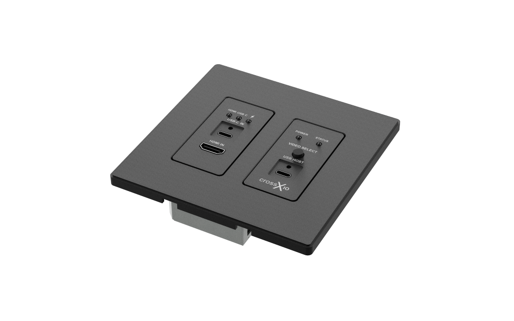 Der AVoverIP Encoder als Wandanschlußfeld (2 Gang) aus der ein Gbit crossXio Serie ermöglicht die Übertragung und Umschaltung ohne spürbare Latenz eines USB-C (60 Watt optional) oder HDMI2.0 Videosignals mit analogen oder Dante/ AES67 Audio und USB2.0/ 1.1. Der USB-C & HDMI Eingang kann via Autoswitching mit Prioritätsschaltung oder Ethernet gesteuert werden. Das System unterstützt Auflösungen bis 4K@60Hz 4:4:4 mit HDMI2.0, ARC/eARC, HDR10/10+, Dolby Vision, CEC, HDCP2.3/ 1.4. Bidirektionales Audio embedding/ deembedding für symmetrisches analoges Audio, Dante oder AES67. USB2.0/1.1 Übertragung mit KVM Routing/ ausgelegt für USB2.0 Kameras. Die Stromversorgung erfolgt über PoE. USB-C Eingang 60 Watt mit mit optionalen Netzteil verfügbar. Endcoder wird mit weißen und schwarzen Blenden ausgeliefert.