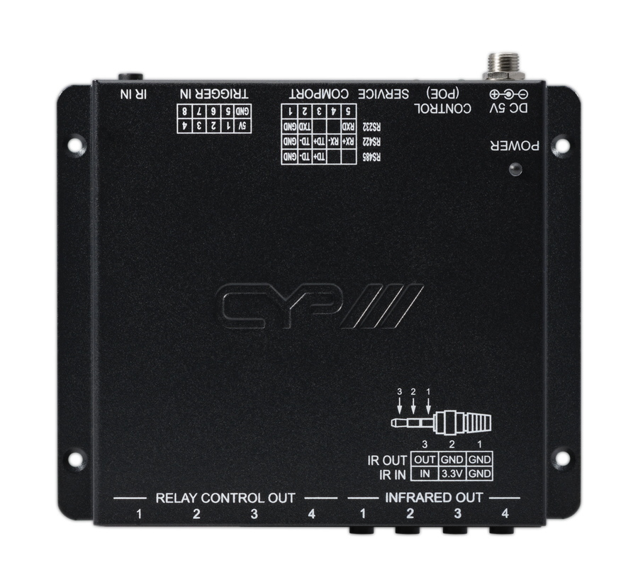 Die CR-CS2 ist ein einfaches Steuerungssystem für eine Vielzahl von angeschlossenen Geräten. Es verfügt über 16 Makros, die im Gerät gespeichert werden und über die WebGUI oder per Telnet aktiviert werden können. Acht davon können auch über die externen Triggeranschlüsse aktiviert werden. Benutzerdefinierte Makros können Befehle über Ethernet, IR (x4), Relais-Trigger (x4) oder RS-232/422/485 (x1) an Remote-Geräte senden, sodass eine Vielzahl von Geräten per Knopfdruck gesteuert werden kann. Eine integrierte IR-Code-Lernfunktion ist ebenfalls verfügbar, mit der der Benutzer die von fast jeder Standard-IR-Fernbedienung gesendeten IR-Codes speichern und erneut übertragen kann. Unterstützt wird Power over Ethernet (PoE).