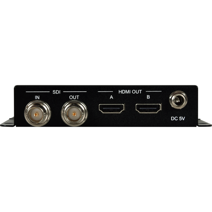 Der Converter wandelt ein 12G-SD, 6G-SDI, 3G-SDI, HD-SDI oder SD-SDI auf ein HDMI2.0 Signal. Analog Stereo Audio wird von deembedded.