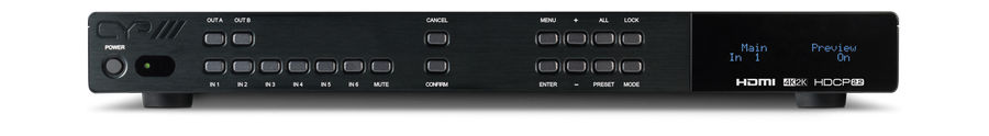 Schaltet 6 HDMI2.0/ DVI-D mit max. UHD/ 4K@60Hz (YUV 4:2:2)