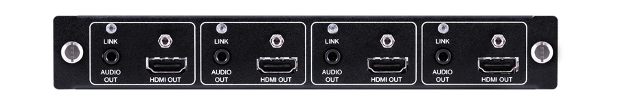 Gibt 4 HDMI UHD/ 4K / HDCP2.2 Signale & 4 analogen Audio Signale aus. Die max. Auflösung ist UHD/ 4K@60Hz 4:4:4 8 bit mit HDR10 & Dolby Vision. Arbeitet mit Kreuzschienen Gehäuse MODX-16