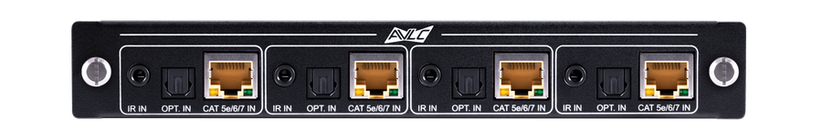 Ermöglicht den Anschluß von 4 HDBaseT (AVLC) UHD/ 4K / HDCP2.2 Signalen, 4 digital Audio Signalen & 4 IR Signale. Die max. Auflösung ist UHD/ 4K@60Hz 4:4:4 8 bit mit HDR10 & Dolby Vision. Die 5 Play Technologie (Video HDBaseT, 100 MBit, PoH, IR & RS232) wird unterstützt. Arbeitet mit Kreuzschienen Gehäuse MODX-16