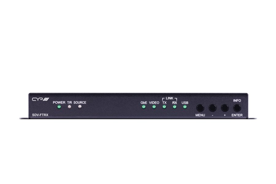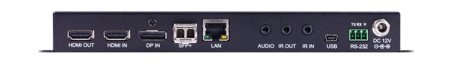 Der LAN Transceiver (SDVoE) ermöglicht die Übertragung eines HDMI2.0 (UHD 3840x2160@60Hz 4:4:4) oder DisplayPort1.2 mit RS232, IR, Audio, LAN 1 Gbit und eines USB1.1/ 2.0 über 2 Multimode Fasern. Die Übertragung erfolgt ohne Latenz (zero latency). Das eingebaute EDID & HDCP Management sichert den stabilen Betrieb mit der Quelle. Der Transceiver kann als Transmitter oder Receiver je nach Konfiguration arbeiten. Der SDVoE Standard benötigt eine Netzwerkinfrastruktur von 10 Gigabit. Die Stromversorgung erfolgt über ein Steckernetzteil.