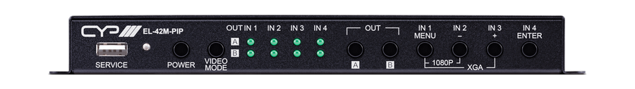 Verarbeitet max. 4 HDMI (max.4k60Hz) Signale und gibt diese auf 2 HDMI Ausgänge wieder aus. Der EL-42M-PIP kann als 4 auf 2 Matrix oder als Multiviewer verwendet werden. In der Multiviewerfunktion erhalten beide Ausgänge das gleiche Signal. Die Bildgröße der einzelnen Quellen kann verändert werden und es können bis zu 4 Fenster (mit Rahmen) angezeigt werden.