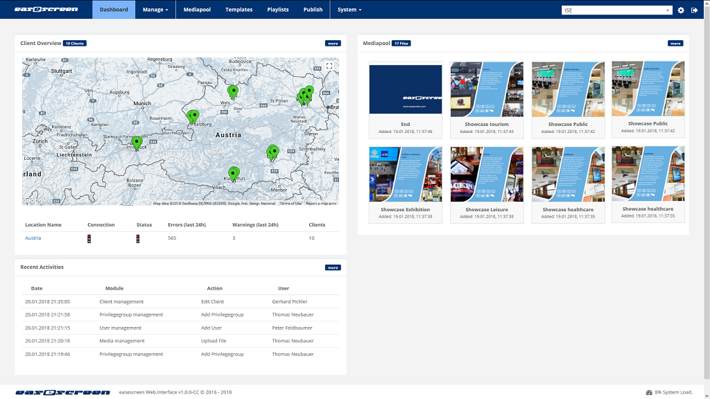 Die Software Assurance plus beinhaltet die anteilige 12-Monats-Nutzungslizenz für das Webinterface und Management-Server (gehostet bei easescreen). Die Cloud-Datenspeicherung erfolgt unter den DSGVO Bestimmungen in Deutschland und Österreich. Die Contenterstellung erfolgt mit dem Webinterface. Das Webinterface liefert Templates, Widgets (z.B. Wetterdaten, usw.), Reporting & visuelles Monitoring. Zusätzlich kann der POV Client mit Servicepacks & Updates versorgt werden.