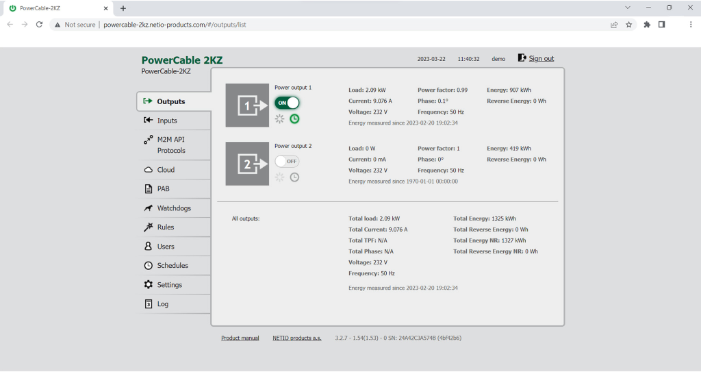 LAN, W-LAN (Web interface, Open API, NETIO Cloud service, NETIO Mobile 2), Digitaler Input