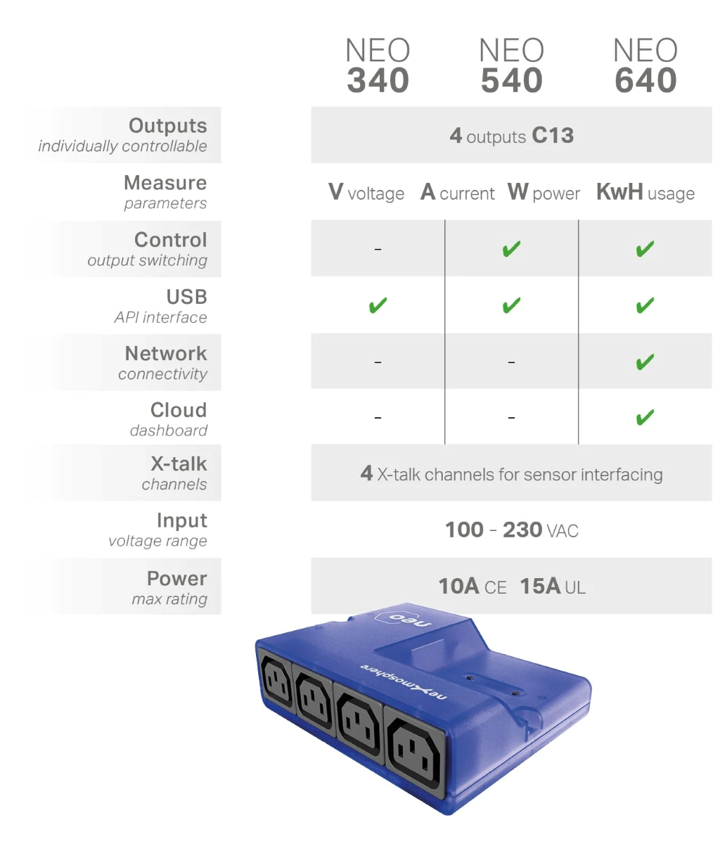 Der NEO340 ist eine intelligente PDU mit detaillierter Energie- und Leistungsüberwachung. Sie bietet praktische Funktionen wie Watchdog und Scheduler, alles direkt auf dem Gerät ohne externe Verbindung.