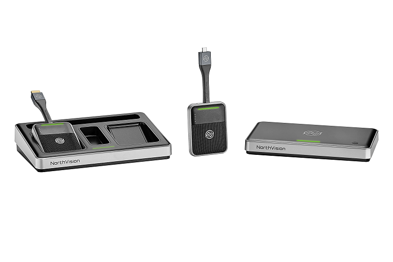 Das Plug & Playsystem ermöglicht die drahtlose Übertragung eines USB-C oder HDMI Signals (max. 1080p@60Hz) inkl. Audio. Die beiden Ausgänge am Receiver können simultan 2 Senken mit dem gleichen Inhalt bedienen oder als erweiterter Desktop verwendet werden. Die Übertragung erfolgt mit 60GHz Technologie. Die W-LAN-Frequenzen (2,4GHz und 5GHz) werden nicht beeinträchtigt. Am Receiver kann das Audiosignal über eine 3,5 mm Klinkenbuchse ausgegeben werden. Die max. Entfernung beträgt 10m. Es gibt keine Limitierung bei der Anzahl von Dongles die mit einem Receiver betrieben werden können. Mit einem vollen Akku beträgt die Laufzeit bei einen Dongle (TX) max. 3,5 Stunden. Die Ladestation für 2 Sender (1 x USB-C/ 1 x HDMI) ist im Lieferung enthalten.