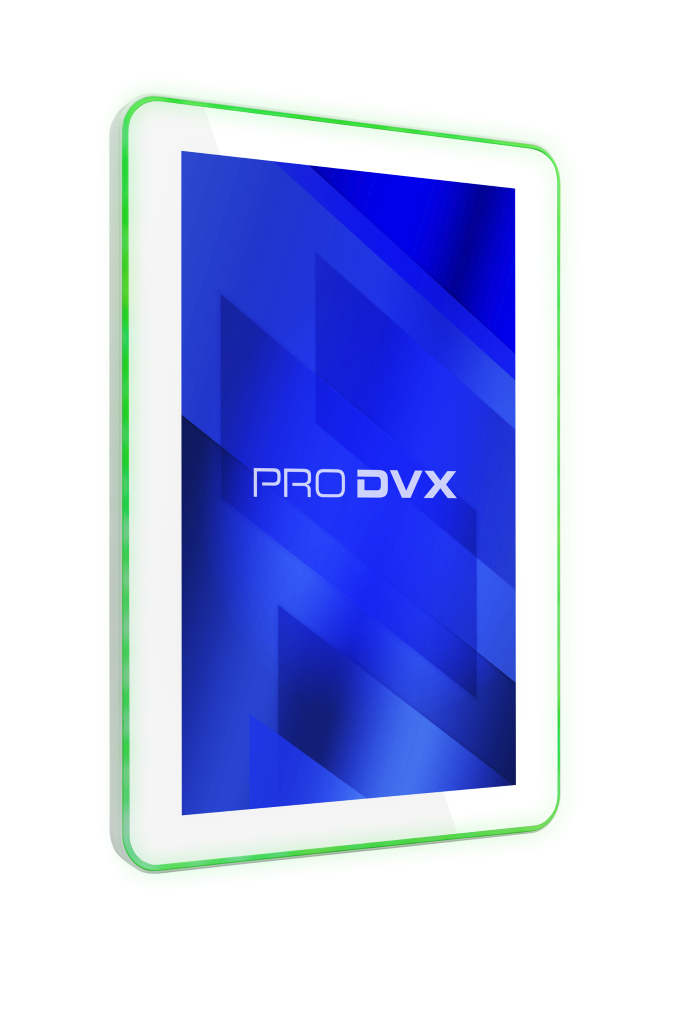 Einsatzbereiche sind u. a. Raumbuchungssysteme oder Informationsterminals. Individualisierung durch die umlaufende LED (RGB Farben). Stromversorgung erfolgt über PoE oder ein externes Netzteil.