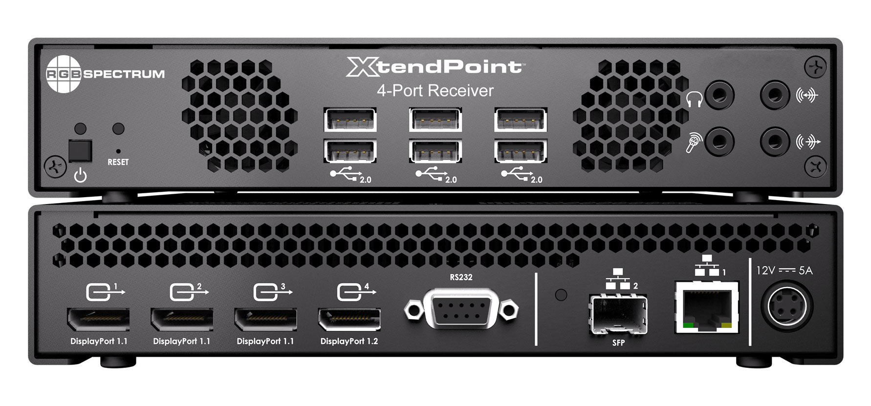 Eine LED auf der Frontseite gibt Auskunft über den Status des Gerätes. Auch als Model XP102RX für die Ausgabe von bis zu 2 DisplayPort Signalen verfügbar. Transmitter XP102TX oder XP104TX notwendig.