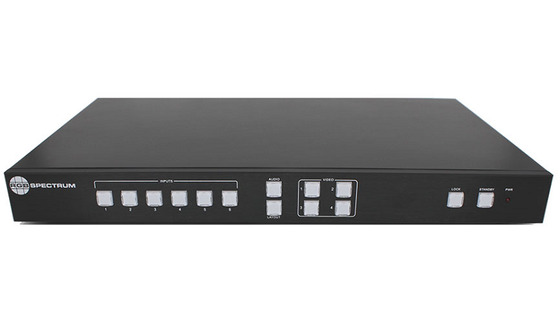 Verarbeitet max. 4 HDMI2.0 (3840x2160@60Hz), 2 DisplayPort1.2 (3840x2160@60Hz) Signale mit Audio und kann max. 4 Quellen gleichzeitig an einer HDMI 2.0 fähigen Senke angezeigt werden. Es stehen 32 feste sowie 12 frei programmierbare Presets zur Verfügung. Ein wählbares Audiosignal kann de-embedded und als Stereo-Analog oder optisches Signal ausgegeben werden. Kompatibel zu HDCP 2.2 und 1.4.