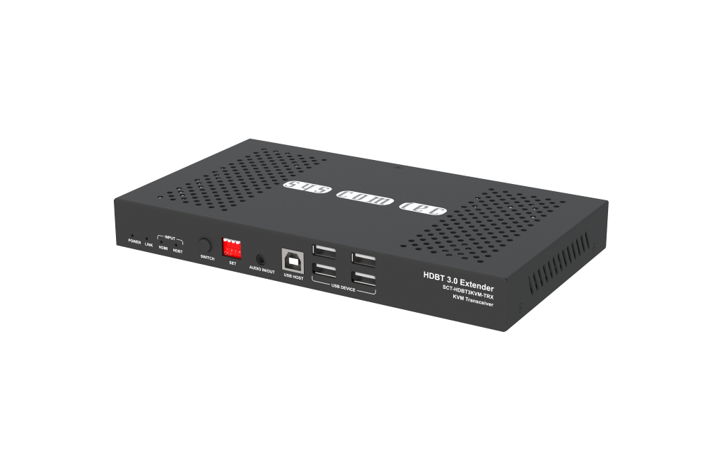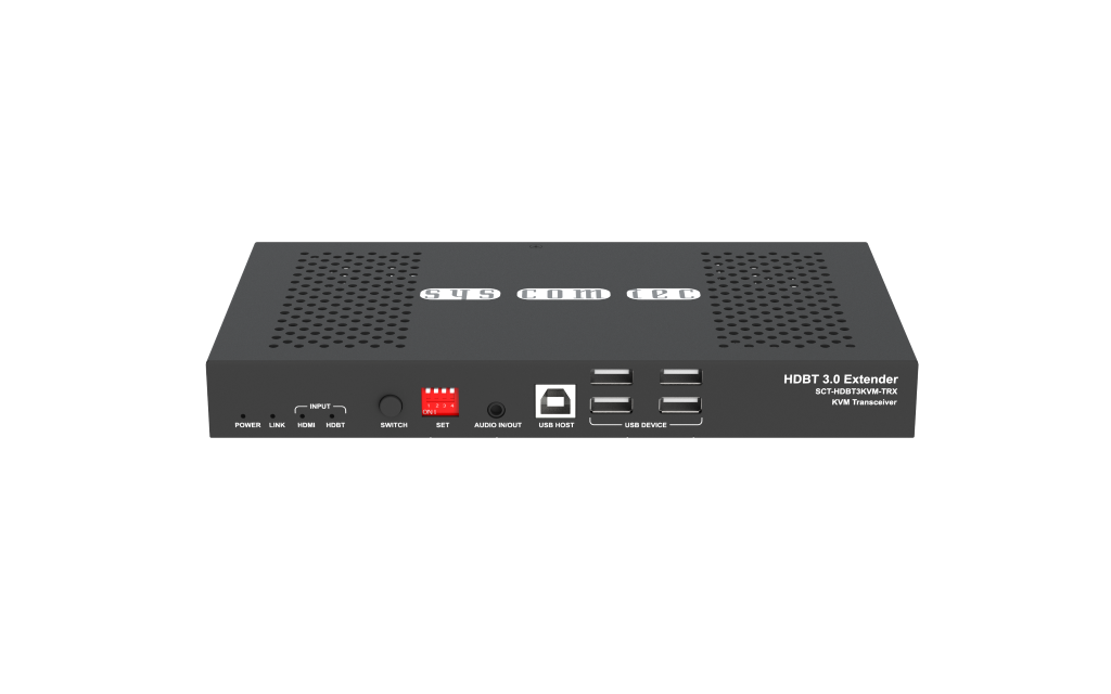 Der HDBaseT3 Transceiver ermöglicht die Übertragung eines HDMI2.0 mit UHD/ 4K@60Hz YUV4:4:4 Auflösung mit HDCP2.2. Zusätzlich wird ein USB2.0 (max. 300 Mbps), Audio, LAN 1G/ 100 Mps, IR und RS232 tw Signale über 1 CAT5e (bis 70m) bzw. mit CAT6a/ CAT7 (bis 100m) Kabel übertragen. Über den HDMI Ausgang kann ein Vorschaumonitor angeschlossen werden. Der Transceiver kann als Transmitter oder Receiver je nach Konfiguration arbeiten.