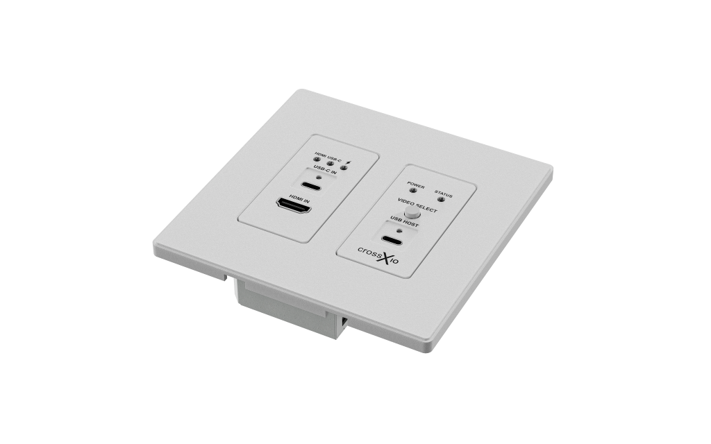 Der AVoverIP Encoder als Wandanschlußfeld (2 Gang) aus der ein Gbit crossXio Serie ermöglicht die Übertragung und Umschaltung ohne spürbare Latenz eines USB-C (60 Watt optional) oder HDMI2.0 Videosignals mit analogen oder Dante/ AES67 Audio und USB2.0/ 1.1. Der USB-C & HDMI Eingang kann via Autoswitching mit Prioritätsschaltung oder Ethernet gesteuert werden. Das System unterstützt Auflösungen bis 4K@60Hz 4:4:4 mit HDMI2.0, ARC/eARC, HDR10/10+, Dolby Vision, CEC, HDCP2.3/ 1.4. Bidirektionales Audio embedding/ deembedding für symmetrisches analoges Audio, Dante oder AES67. USB2.0/1.1 Übertragung mit KVM Routing/ ausgelegt für USB2.0 Kameras. Die Stromversorgung erfolgt über PoE. USB-C Eingang 60 Watt mit mit optionalen Netzteil verfügbar. Endcoder wird mit weißen und schwarzen Blenden ausgeliefert.