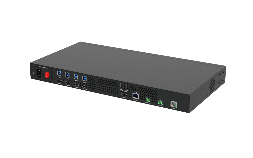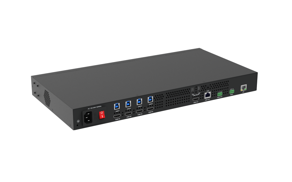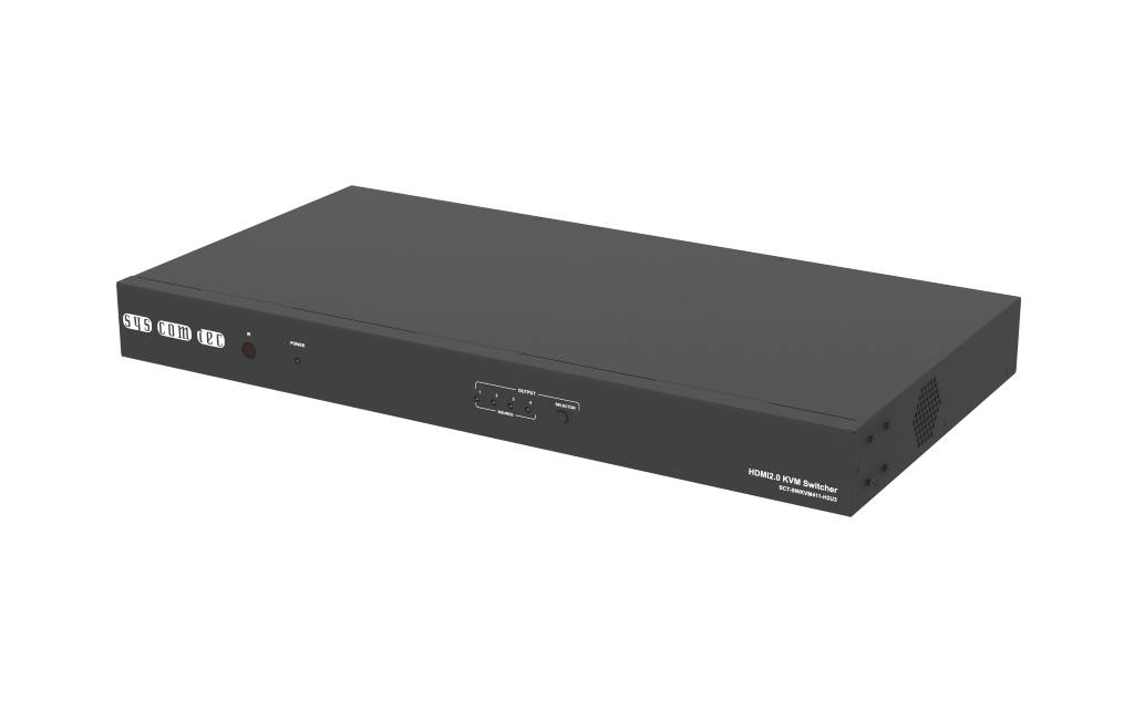 Schaltet 4 HDMI2.0/ DVI-D mit max. UHD/ 4K@60Hz (YUV 4:4:4) mit USB3/2/1 auf 1 HDMI/ HDBaseT3 und USB3/2/1 Ausgang. Mit den passenden HDBaseT3 Transceiver SCT-HDBT3KVM-TRX wird HDMI, Ethernet, RS232, IR, USB2.0 übertragen. Übertragungsdistanzen betragen mit CAT5e (bis 70m) bzw. mit CAT6a/ CAT7 (bis 100m). In Verbindung mit den Transceiver (kann als Sender oder Empfänger konfiguriert werden) hat jeder Ausgang einen 6 fach USB Hub. Schalter liefert via PoE Strom für Transceiver. Mittels Audio Deembedding wird das Audiosignal über einen analogen Audioausgang ausgegeben. Kann via Fronttasten, RS232 oder TCPIP gesteuert werden.