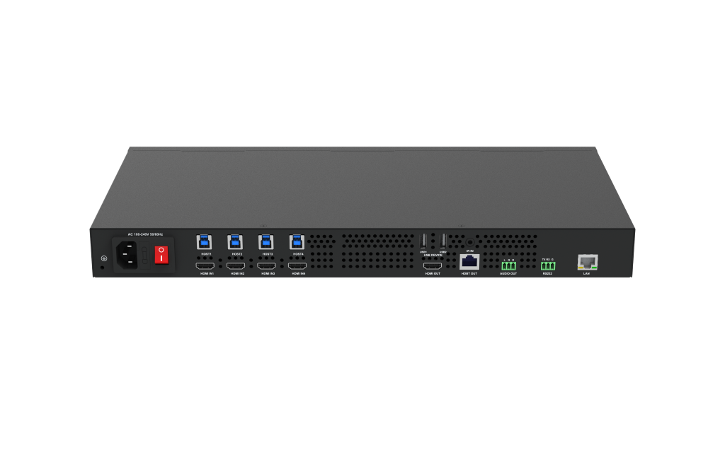 Schaltet 4 HDMI2.0/ DVI-D mit max. UHD/ 4K@60Hz (YUV 4:4:4) mit USB3/2/1 auf 1 HDMI/ HDBaseT3 und USB3/2/1 Ausgang. Mit den passenden HDBaseT3 Transceiver SCT-HDBT3KVM-TRX wird HDMI, Ethernet, RS232, IR, USB2.0 übertragen. Übertragungsdistanzen betragen mit CAT5e (bis 70m) bzw. mit CAT6a/ CAT7 (bis 100m). In Verbindung mit den Transceiver (kann als Sender oder Empfänger konfiguriert werden) hat jeder Ausgang einen 6 fach USB Hub. Schalter liefert via PoE Strom für Transceiver. Mittels Audio Deembedding wird das Audiosignal über einen analogen Audioausgang ausgegeben. Kann via Fronttasten, RS232 oder TCPIP gesteuert werden.