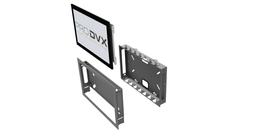 Unterputzputzrahmen für Türschild 15,6" PRODVX APPC-15XP. Der Unterputzrahmen besteht aus einer Unterputzdose und entsprechender Blende. Die Blende ist Pulverbeschichtet.