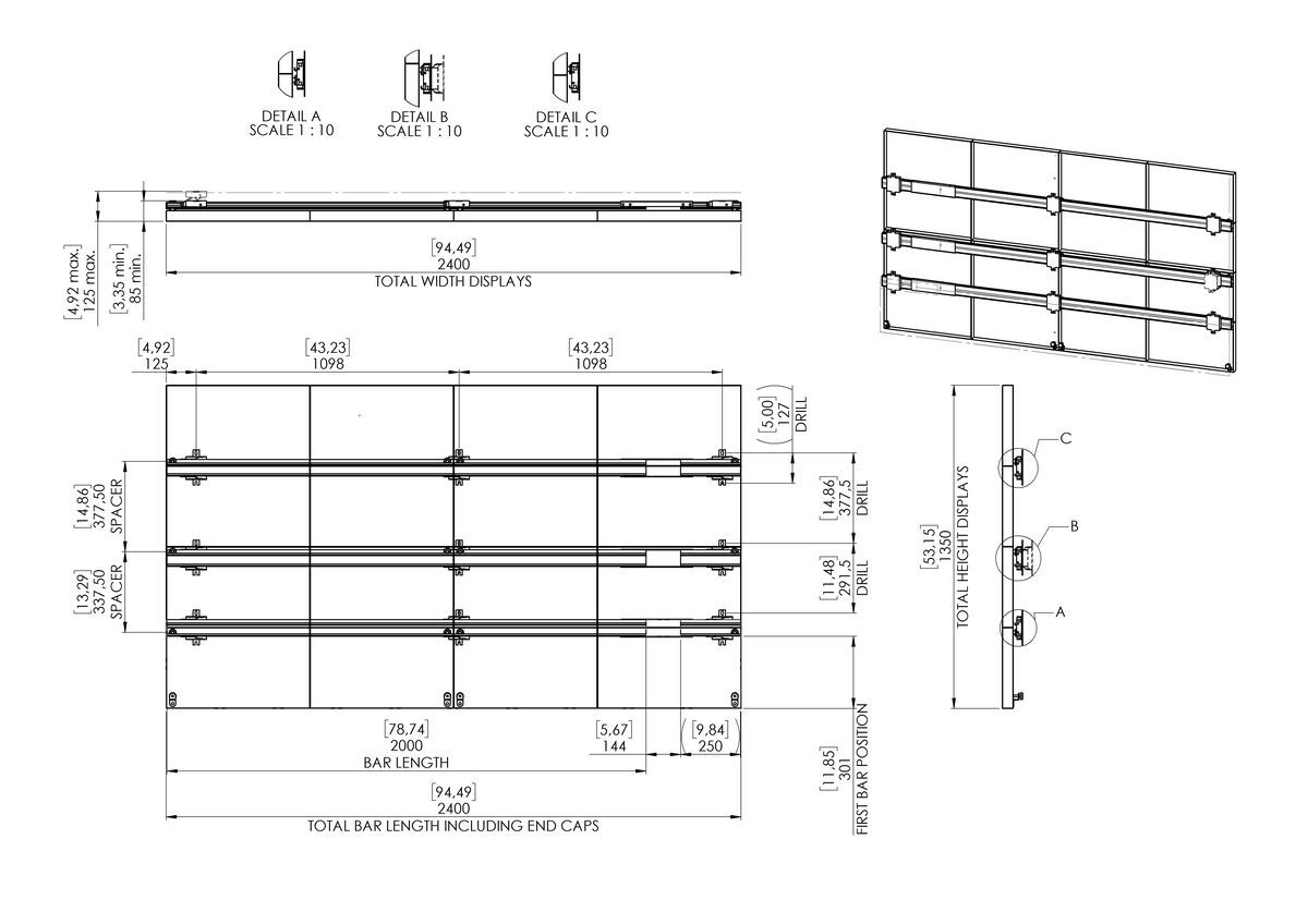 9x verstellbare 3D-Wandhalterung