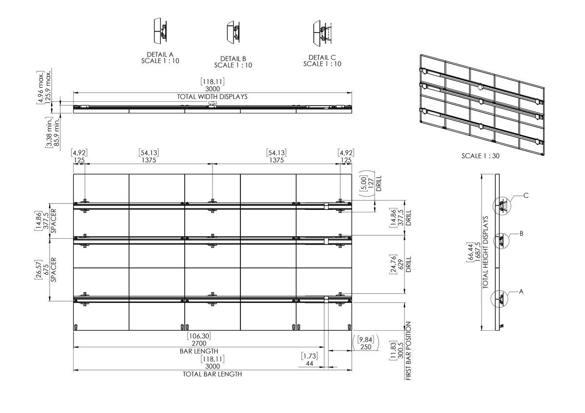 9x verstellbare 3D-Wandhalterung