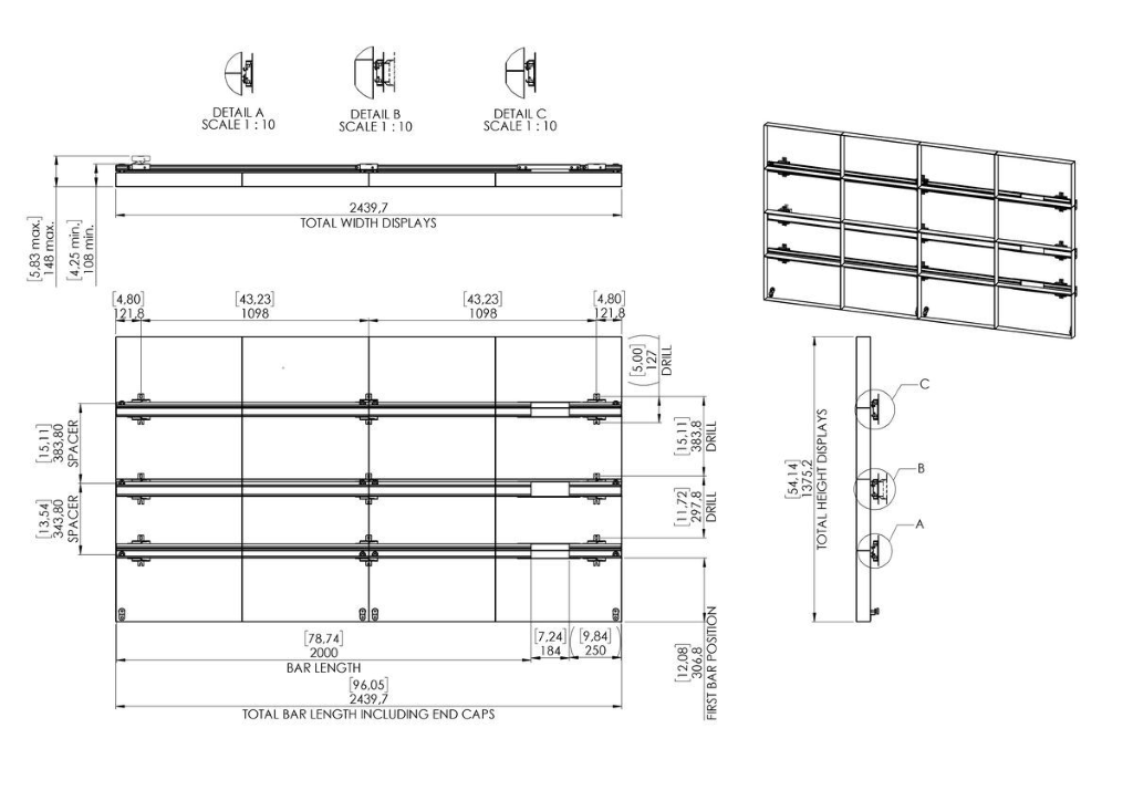 9x verstellbare 3D-Wandhalterung