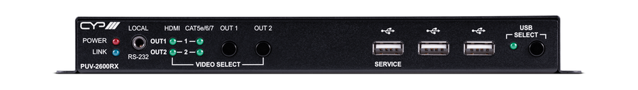 The PUV-2600RX can provide 48V PoH (Power over HDBaseT) power to the connected HDBaseT Transmitter (compatible Transmitters only), allowing for greater flexibility within different installation scenarios. This unit is controllable via front-panel controls, WebGUI, Telnet, and RS-232.