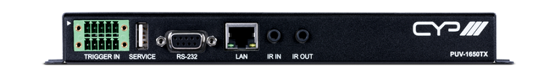 The PUV-1650TX has been designed with collaboration in mind, it-s the perfect turnkey solution for extending and switching video in commercial applications. The PUV-1650TX/RX not only provide total AV conversion and extension, they also add a level of system control throughout the meeting space. The unit includes HDMI, DisplayPort & VGA inputs offering total meeting space compatibility. Sources can be transmitted upto 100m (1080p) and 4K@60Hz (4:2:0 8-bit) can be transmitted over 70m over CAT 6/7 cable. The compatible receiver can scale the HDBaseT video source or local HDMI input to match the connected displays resolution requirements. The PUV-1650 differs from other HDBaseT extender sets with its additional layer of control. This unit provides an interface for a remote control keypad or trigger interface which could be placed in a variety of installation scenarios (Lecterns, meeting room tables, podiums, etc...). This interface allows the user to control a wide range of devices and macro commands from the touch of a button over the local network. Complimentary control products within the CYP range include the CR-TG1 & CR-KP products. The TX also features -Top Panel- controls for direct control of the device (with OSD) and the added benefit of a WebGUI, RS232 and LAN control. Using the WebGUI interface timed events can be stored on the unit for added system control.A key feature of the PUV-1600 series is that the power is sent to the TX from the mains powered RX. This offers additional flexibility when integrating and designing meeting room solutions.