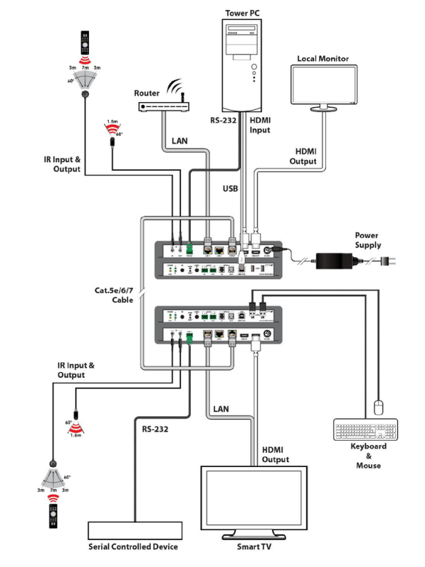 The PUV-3150TR-UEAO 4K UHD+ HDMI over HDBaseT Transceiver uses HDBaseT 3.0, the newest generation of HDBaseT technology, and is the perfect solution for extending full bandwidth (18Gbps) HDMI 2.0, 4K@60Hz (4:4:4, 8-bit) video with HD audio as well as Ethernet and control via a single run of Cat.6A/7 cable over distances of up to 100 meters.
