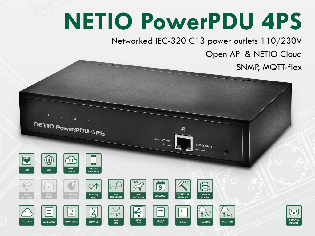LAN (Web interface, Open API, NETIO Cloud service, NETIO Mobile 2)