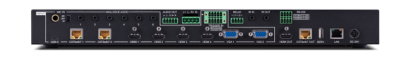 A trigger input interface is also provided to allow the easy addition of a remote control keypad, or other trigger-supporting products, which can be installed within a podium or within a table in a conference room or classroom. This interface can allow the user to activate functions with the simple press of a button. Standard control is available via front panel buttons with an On-Screen Display (OSD), WebGUI, IR remote, Telnet, and RS-232 making it exceptionally versatile.